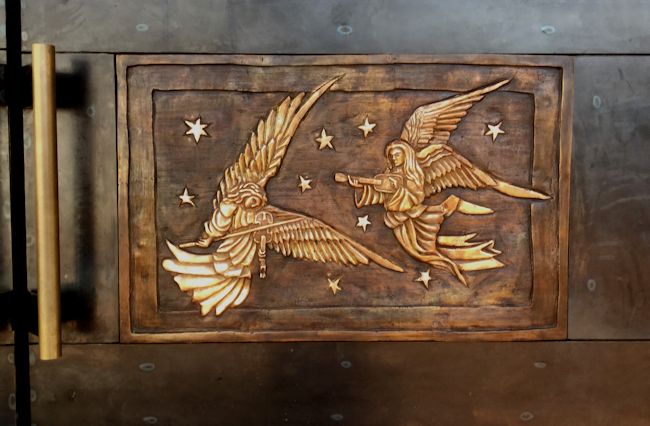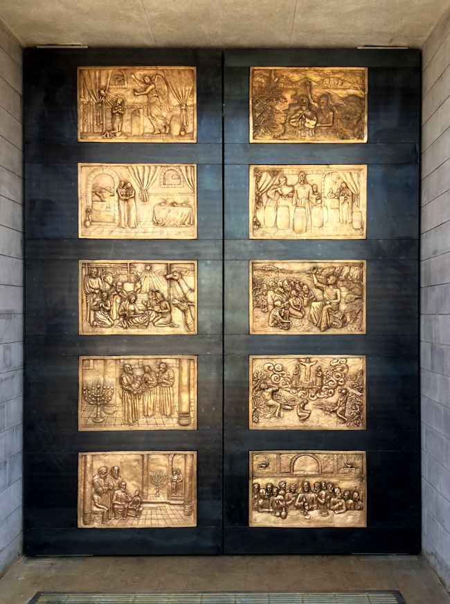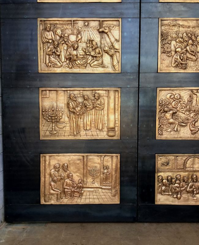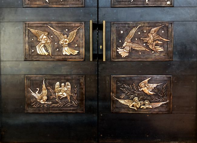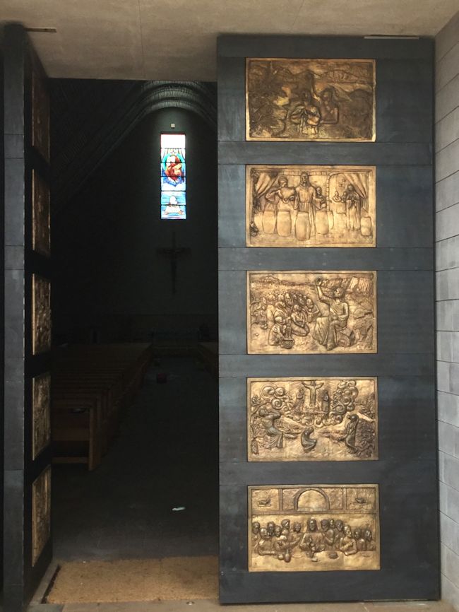 The doors for the cathedral are made of steel, beautifully made by the Propolis Studio.