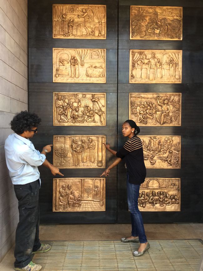 panels for the main doors were designed and cast from clay sculptures made by Florence Wangui.