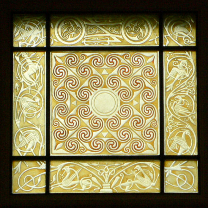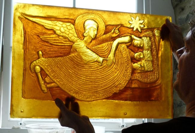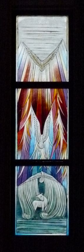 AS can be seen in this film, this is not glass painting, but a relief sculpture.